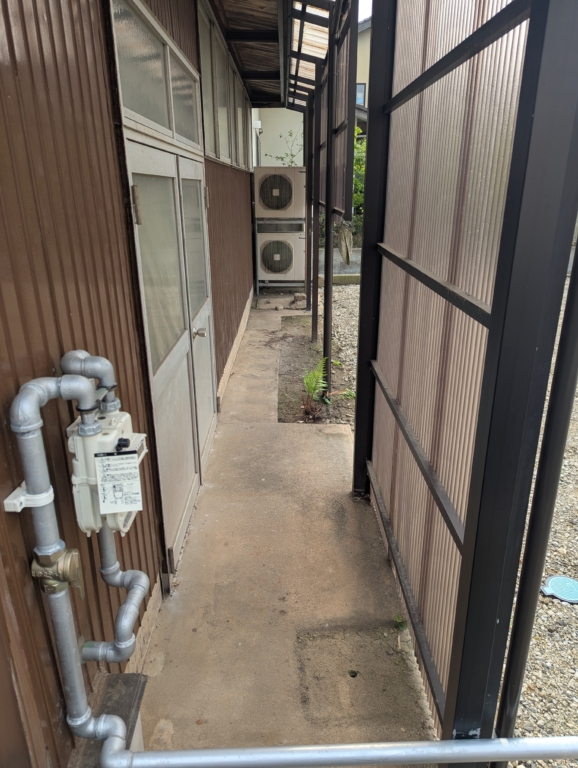 フェンスを外せば、室外機の取り出しも出来ます。