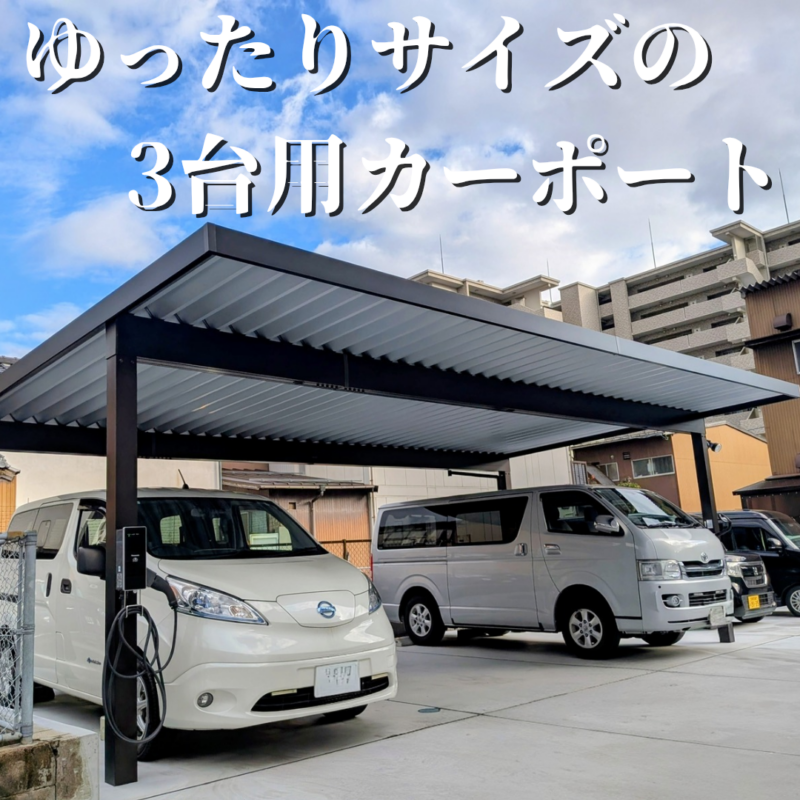 ゆったりサイズの3台用カーポートを設置して、